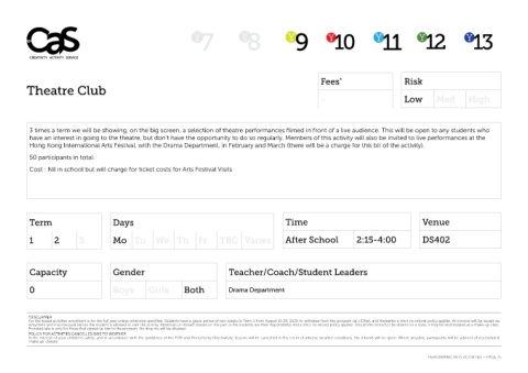 Cost : Nil in school but will charge for ticket costs for Arts Festival Visits