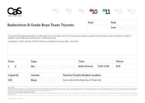 Competition: HKSSF Oct-Dec, ISSFHK U20 Boys and U16 Boys February 22nd - April 23rd.