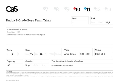 Additional Fees: Purchase of shorts/socks and mouthguard