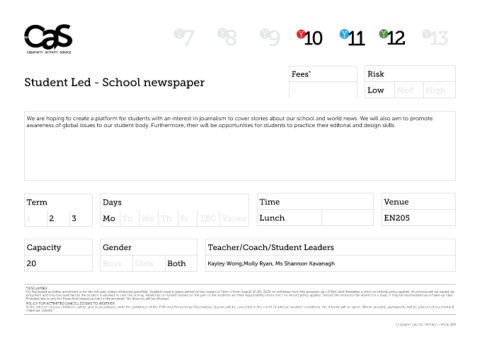awareness of global issues to our student body. Furthermore, their will be opportunities for students to practice their editorial and design skills.