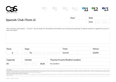This is for Exam year students – 11 and 13. Year 12s teach the Y11 students and therefore we are looking for good year 12 Spanish students to support this as part of