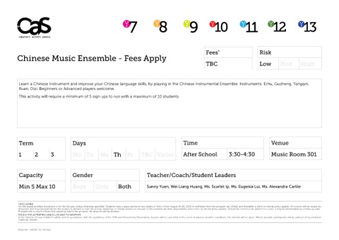Learn a Chinese Instrument and improve your Chinese language skills, by playing in the Chinese Instrumental Ensemble. Instruments: Erhu, Guzheng, Yangqin,