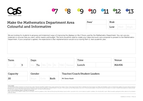 We are looking for students to propose and implement ways of improving the displays on the 2 floors used by the Mathematics Department. You can use any