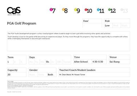 The PGA Youth Development program is a four-level program where students begin to learn golf while involving other sports and activities.