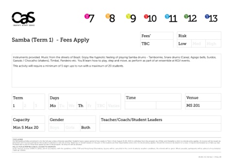Music Activities Term 1 Samba (Term 1) - Fees Apply