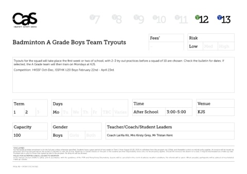 Term 1-2          Badminton A Grade Boys Team Tryouts