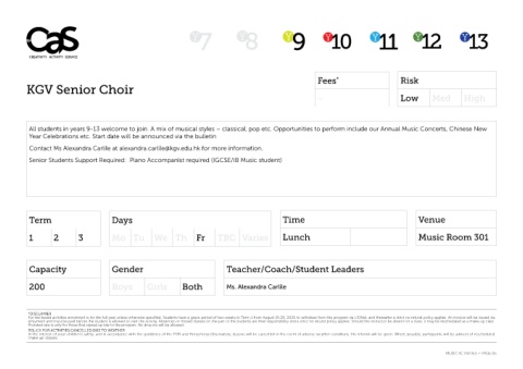 Contact Ms Alexandra Carlile at alexandra.carlile@kgv.edu.hk for more information.