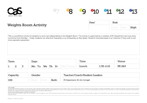 This is a lunchtime activity for students to work out independently in the Weights Room. The activity is supervised by a member of PE Department and runs every