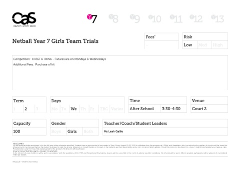 For fee-based activities enrolment is for the full year unless otherwise specified. Students have a grace period of two-weeks in Term 1 from August 15-28, 2020 to withdraw from the program via LIONeL and thereafter a strict no refund policy applies. An invoice will be issued via