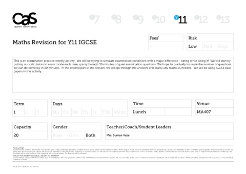 Maths Revision for Y11 IGCSE