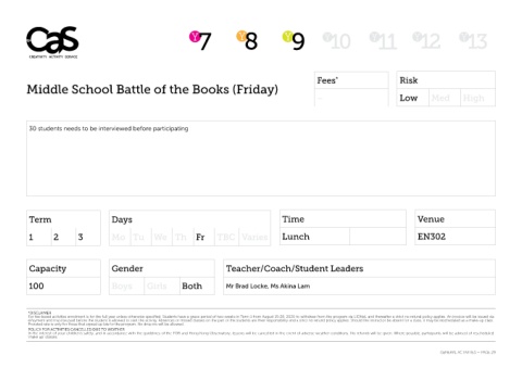 For fee-based activities enrolment is for the full year unless otherwise specified. Students have a grace period of two-weeks in Term 1 from August 15-28, 2020 to withdraw from the program via LIONeL and thereafter a strict no refund policy applies. An invoice will be issued via