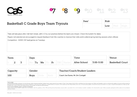 Trials will take place after mid-term break, with 2-3 try out practices before the teams are chosen. Check the bulletin for dates.