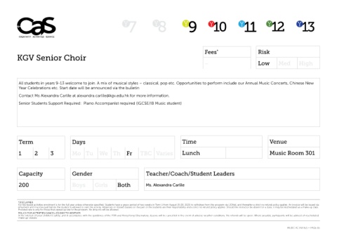 Contact Ms Alexandra Carlile at alexandra.carlile@kgv.edu.hk for more information.