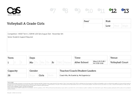 Competition: HKSSF Term 1, ISSFHK U20 Girls August 31st - November 6th