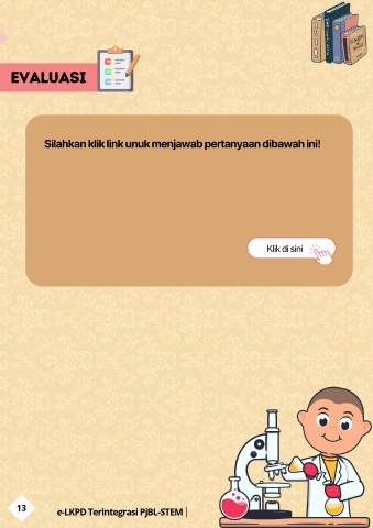 EVALUASI Silahkan klik link unuk menjawab pertanyaan dibawah ini! Klik di sini 13 e-LKPD Terintegrasi PjBL-STEM