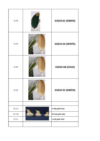 14-28 G2010-6C (GREEN) 14-29 G2010-5A (WHITE) 14-30 G2010-5B (GOLD) 14-31 G2010-5C (GREEN) 15-1-S S only gold color 15-1-M M only gold color 15-1-L L only gold color