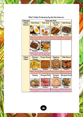 Tabel 9. Bahan Pendamping Sup dan Soto Indonesia
