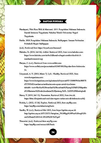 Handayani, Titin Hera Widi & Marwanti. 2011. Pengolahan Makanan Indonesia.