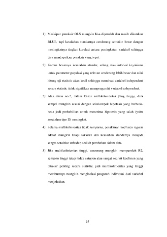 4) Selama multikolinieritas tidak sempurna, penaksiran koefisien regresi