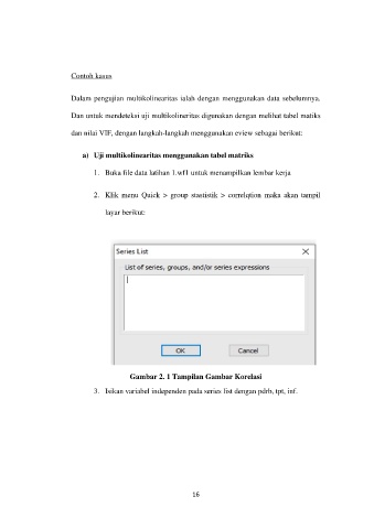 2. Klik menu Quick > group stastistik > correlqtion maka akan tampil