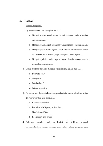 1.  Uji heteroskedastisitas bertujuan untuk ......