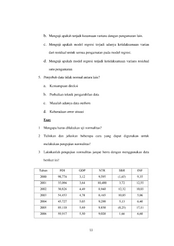 b. Menguji apakah terjadi kesamaan varians dengan pengamatan lain.