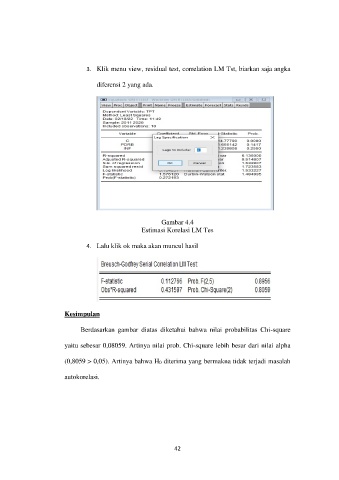 3. Klik menu view, residual test, correlation LM Tst, biarkan saja angka
