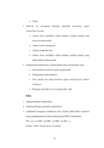 2. Jelaskan beberapa penyebab Autokorelasi!