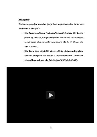 memenuhi syarat dimana nilai JB 1,93>2 dan bilai Prob. 0,37>0,05.