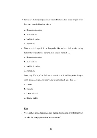 4 Dalam model regresi linear berganda, jika variabel independen saling