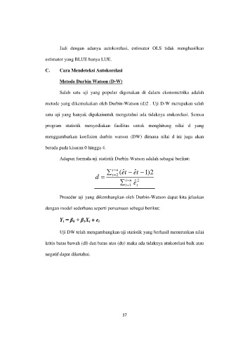 menggambarkan koefisien durbin watson (DW) dimana nilai d ini juga akan