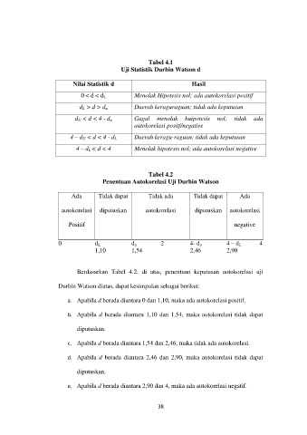d U < d < 4 - d u Gagal menolak huipotesis nol; tidak ada