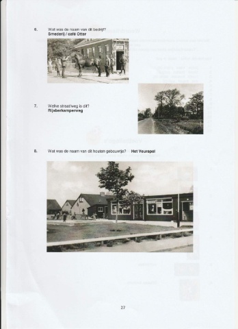 r 6. Wat was de naam van dit bedrijÍ? Smederij/ café Otter 7. Welke straaVweg is dit? Rijsberkamperweg 8. Wat was de naam van dit houten gebouwtje? Het Veurspel r.]il r ffi ï ,t'{ t'j I ljl I 7 --r ffi H r+' *c*s FlEdr' i, 27