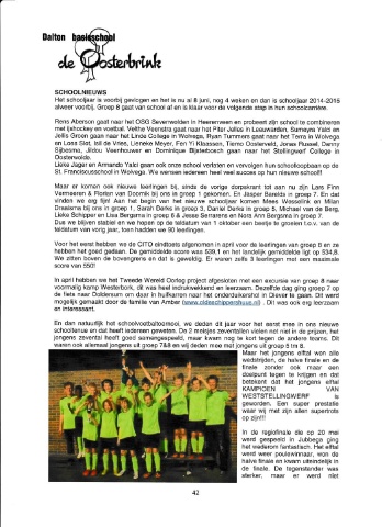 Het schooljaar is voorbij gevlogen en het is nu al 8 juni, nog 4 weken en dan is schooljaar 2014-2015