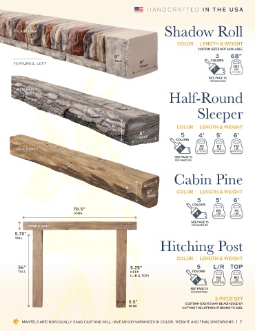 MANTELS ARE INDIVIDUALLY HAND CAST AND WILL HAVE MINOR VARIANCES IN COLOR, WEIGHT, AND FINAL DIMENSIONS | 7