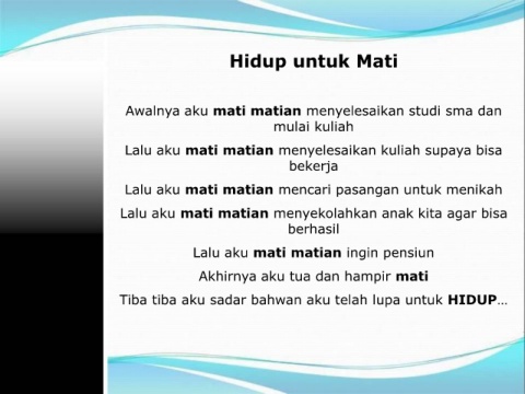 Tiba tiba aku sadar bahwan aku telah lupa untuk HIDUP…