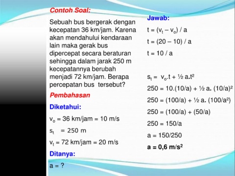 menjadi 72 km/jam. Berapa s = v .t + ½ a.t²