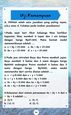 d. 2x + 2y = 5.000 dan x + y = 7.000