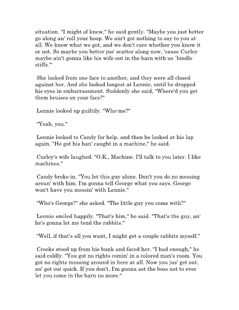 Curley's wife laughed. "O.K., Machine. I'll talk to you later. I like