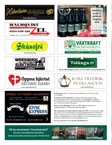 Vill du annonsera i Countrysmart? Ring eller maila KERSTIN KARLSSON kerstin.karlsson@countrysmart.se eller 070-523 76 39