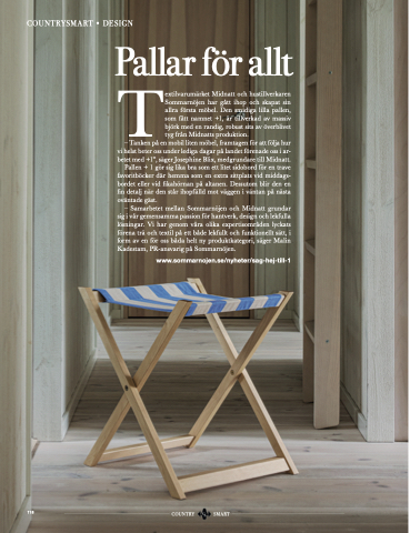 Pallen + 1 gör sig lika bra som ett litet sidobord för en trave favoritböcker där hemma som en extra sittplats vid middags- bordet eller vid fikahörnan på altanen. Dessutom blir den en fin detalj när den står ihopfälld mot väggen i väntan på nästa oväntade gäst.