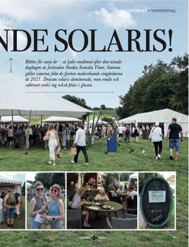 Bättre för varje år – så lyder omdömet efter den nionde årgången av festivalen Smaka Svenska Viner. Samma gäller vinerna från de fjorton medverkande vingårdarna år 2025. Druvan solaris dominerade, men rondo och cabernet cortis tog också plats i glasen.