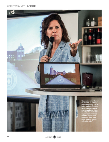 ”Jag tycker om uniformer. De blir som en rustning jag sätter på mig. Det får gärna vara färg och sitta skönt. Jag mixar ZARA, mormors päls och Carin Rodebjer hej vilt. Det är ungefär som min inred‐ ningsstil: loppis‐ och vindsfynd mixat med IKEA, italiensk design och antikviteter”.
