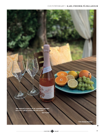 COUNTRYSMART • KARL FREDRIK PÅ EKLAHOLM ”Min alkoholfri prosecco är ett uppskattat alternativ. Den finns i många butiker över hela landet”. Karl Fredrik Foto Natasa Medved COUNTRY SMART 21