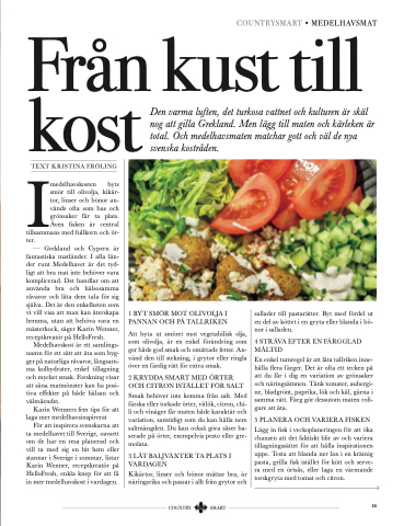 — Grekland och Cypern är fantastiska matländer. I alla län- der runt Medelhavet är det tyd- ligt att bra mat inte behöver vara komplicerad. Det handlar om att använda bra och hälsosamma råvaror och låta dem tala för sig själva. Det är den enkelheten som vi vill visa att man kan återskapa hemma, utan att behöva vara en mästerkock, säger Karin Wenner, receptkreatör på HelloFresh.