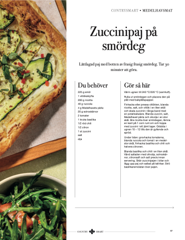 en potatisskalare. Blanda zuccini, salt, Medelhavet pärla och olivolja i en stor skål. Bre ricotta över smördegan, lämna en kant på 1 com runt om och toppa med zuccini i ett jämt lager. Grädda i ugnen 10 – 12 tills den är gyllende och spröd.