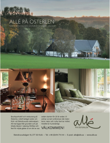 Stenshuvudvägen 19, 277 35 Kivik • Tel: +46 (0)414 714 44 • E-post: alle@alle.se • www.alle.se