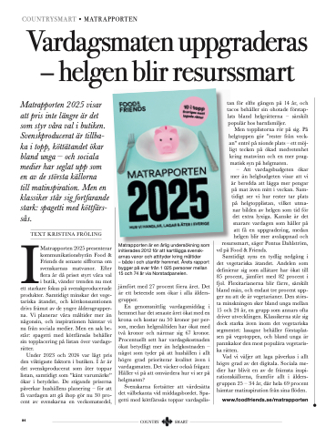 Matrapporten 2025 visar att pris inte längre är det som styr våra val i butiken. Svenskproducerat är tillba- ka i topp, köttätandet ökar bland unga – och sociala medier har seglat upp som en av de största källorna