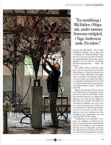 ”En utställning i Blå Hallen i Höga- näs, under namnet Sinnenas trädgård, i Tage Andersens anda. Ett måste.”