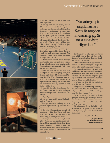 Nu är det kläder, glas – och en fram- gångsrik satsning på kvinnliga idrotts- kläder. Kosta som destination är maka- lös, och genom Torsten och hans barn lär vi få se ännu mer.